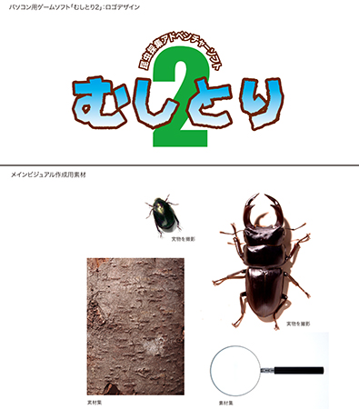 木の幹、虫眼鏡、空、葉は素材集から使用してPhotoshop(R)で合成。
